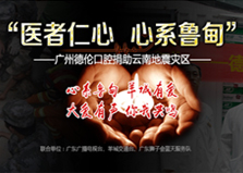 2014.8.8"心系魯甸"德倫口腔物資捐助云南地震災區 自8月3日云南省昭通市魯甸縣發生6.5級地震以來,災情牽動著全國人民的心,也牽動著廣州德倫口腔的心。為幫助災區渡過難關貢獻一份力量,德倫口腔參與了由廣東廣播電視臺、羊城交通臺、廣東獅子會藍天服務隊籌集的"心系魯甸、羊城有愛地震"災區獻愛心活動,先期捐助5500 瓶水以及價值100000元的生活、醫療物資,以解災區人民燃煤之急....